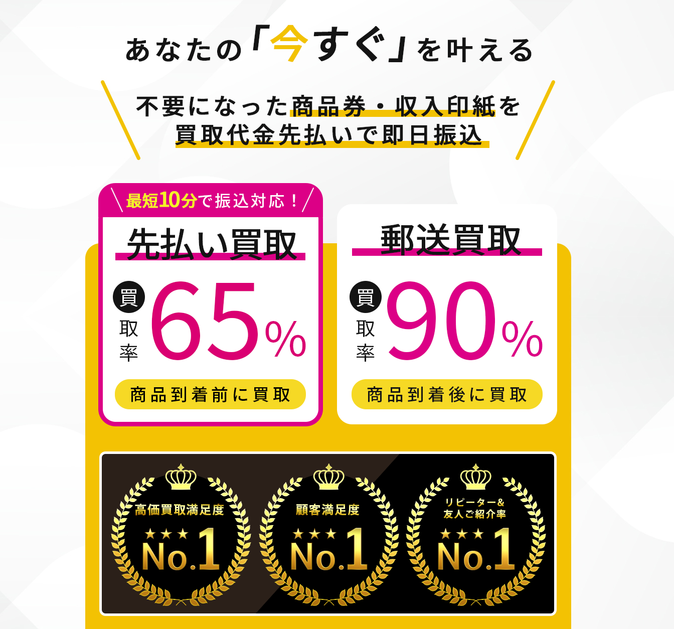 なんと言っても郵送買取95%という圧倒的な高換金率が魅力で、多少日数(2~3日)を待てるなら非常にお得です。実際「郵送で送ったら90%以上で買い取ってもらえた」という満足の声が多数あります。また、シープチケットも店舗持込で80~90%と高額換金できます。都内に行ける方で額が大きい場合は、シープチケットの店舗買取を検討する価値があります(要予約ですが高換金)。少しでも損を減らしたい方は、これら高換金プランを提供する業者を選ぶと良いでしょう。